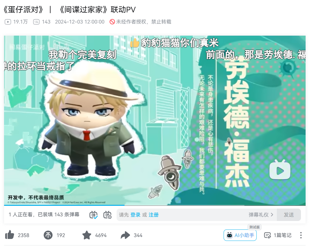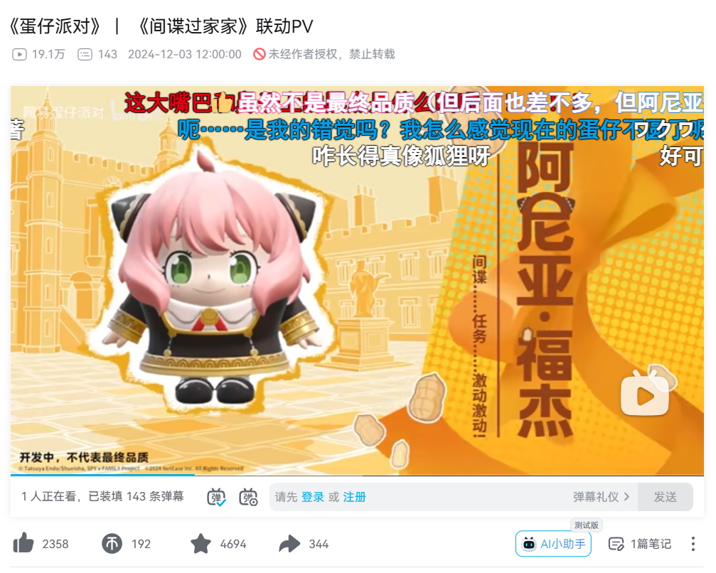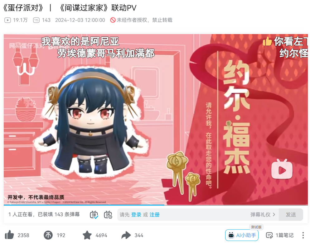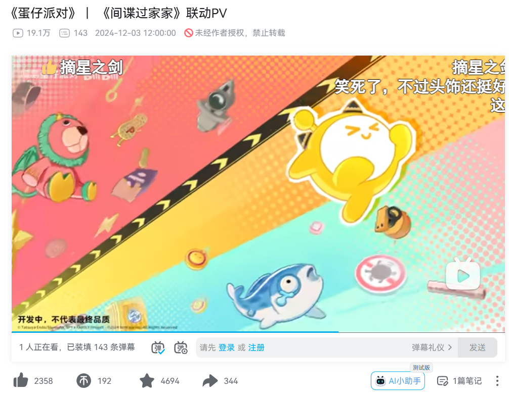 the Eggy Party x Spy x Family collaboration PV:https://www.bilibili.com/video/BV1es6PYCEfw/?spm_id_from=333.1387.search.video_card.click